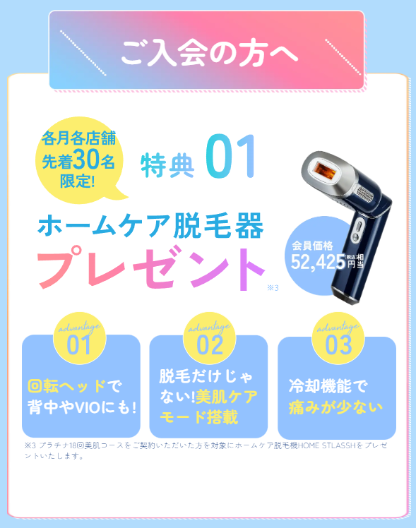 • 01全身脱毛が月額1,500円!